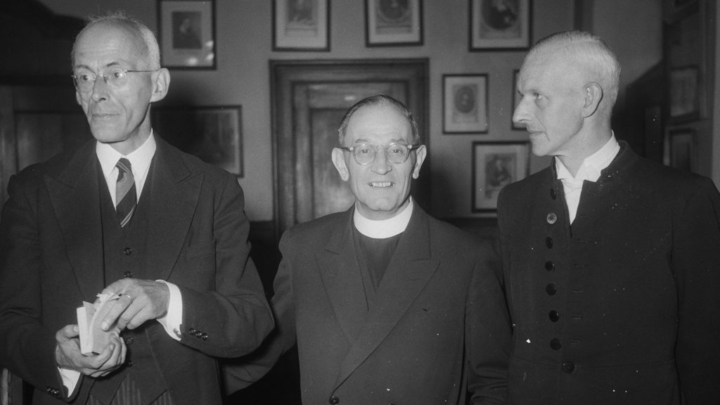 Pastor Martin Niemoeller (the man in the middle in the photo above), a leading light of Germany’s Confessing Church, and a U-boat commander in World War I, was sent to Sachsenhausen concentration camp for publicly resisting Nazi ideas on this day in 1938.