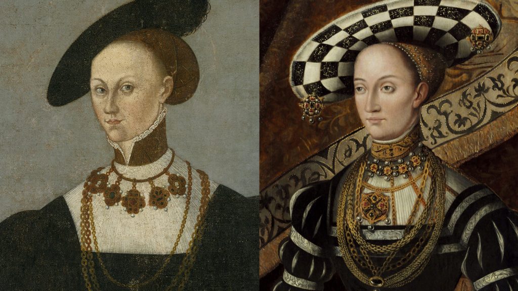 Today in 1540 Philip of Hesse married Margarete von der Saale (left above), with the approval of Martin Luther, despite already being married to his wife Christine von Sachsen (right above). Philip’s selfless calculation was that of the three evils – keeping Margarete as his mistress, divorcing Christine to marry Margarete, or being married to them both, the latter was least worst. He was the most powerful of all the Protestant princes, and offered Luther the choice of condoning his bigamy or watching him take his land back to Catholicism. Well, what’s a man of God to do?